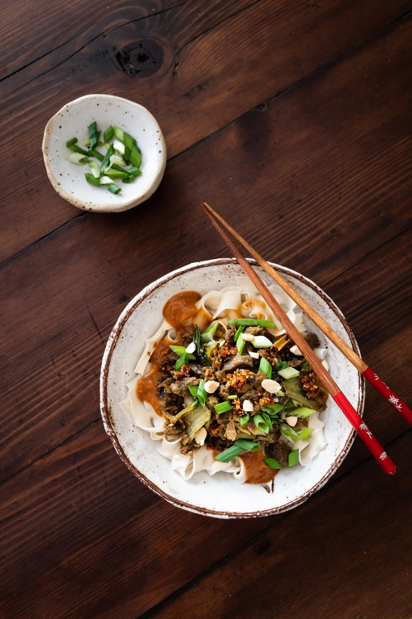Dandan noodles eli tuliset maapähkinävoi-nuudelit
